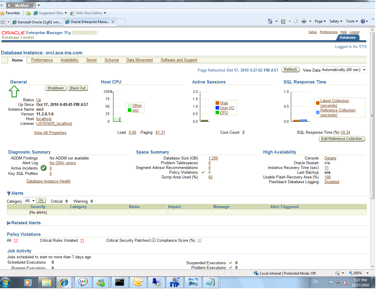 Import: Release 10.2.0.1.0 – 64bit Production on Wednesday, 27 October, 2010 17: