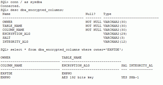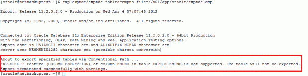 Normal export exp support if table column encrypted?